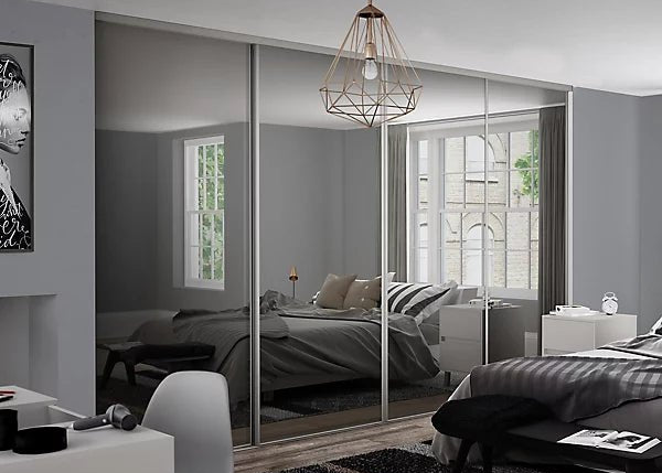 Choose from ultra-modern, mirrored sliding doors or clean blocks of colour for that minimalist look. All our made-to-measure wardrobes are finished with powder-coated satin silver frames and matching tracks to give a fully cohesive look.